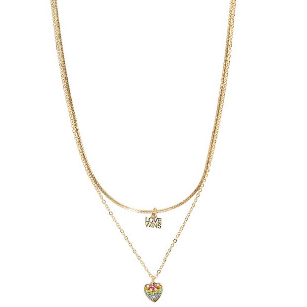 Sportybella Love Wins Necklace LGBT Gay Pride Awareness Rainbow Striped Heart Charm Pendant Gay Bisexual Rainbow Flag Jewelry Very well made.