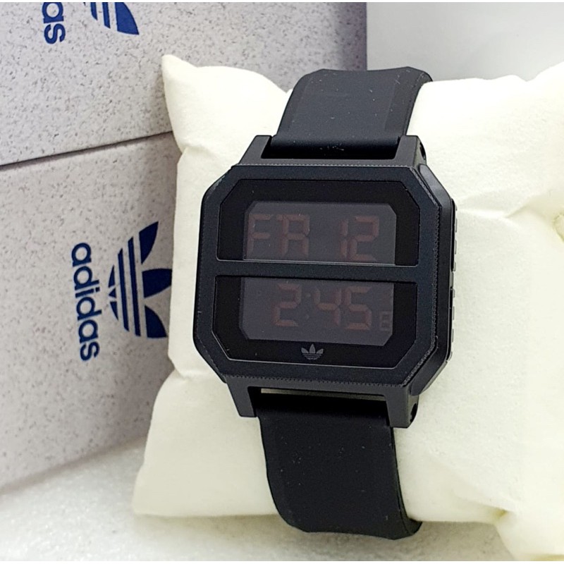 Jual JAM TANGAN ADIDAS FULL BLACK HITAM DIGITAL LED LIGHT RUBBER Very well made.