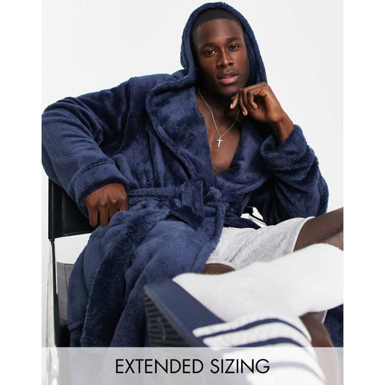 ASOS DESIGN lounge dressing gown in navy fleece ASOS Very well made.