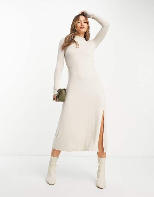 Mango Vestito midi in maglia color crema con spacco laterale Very well made.