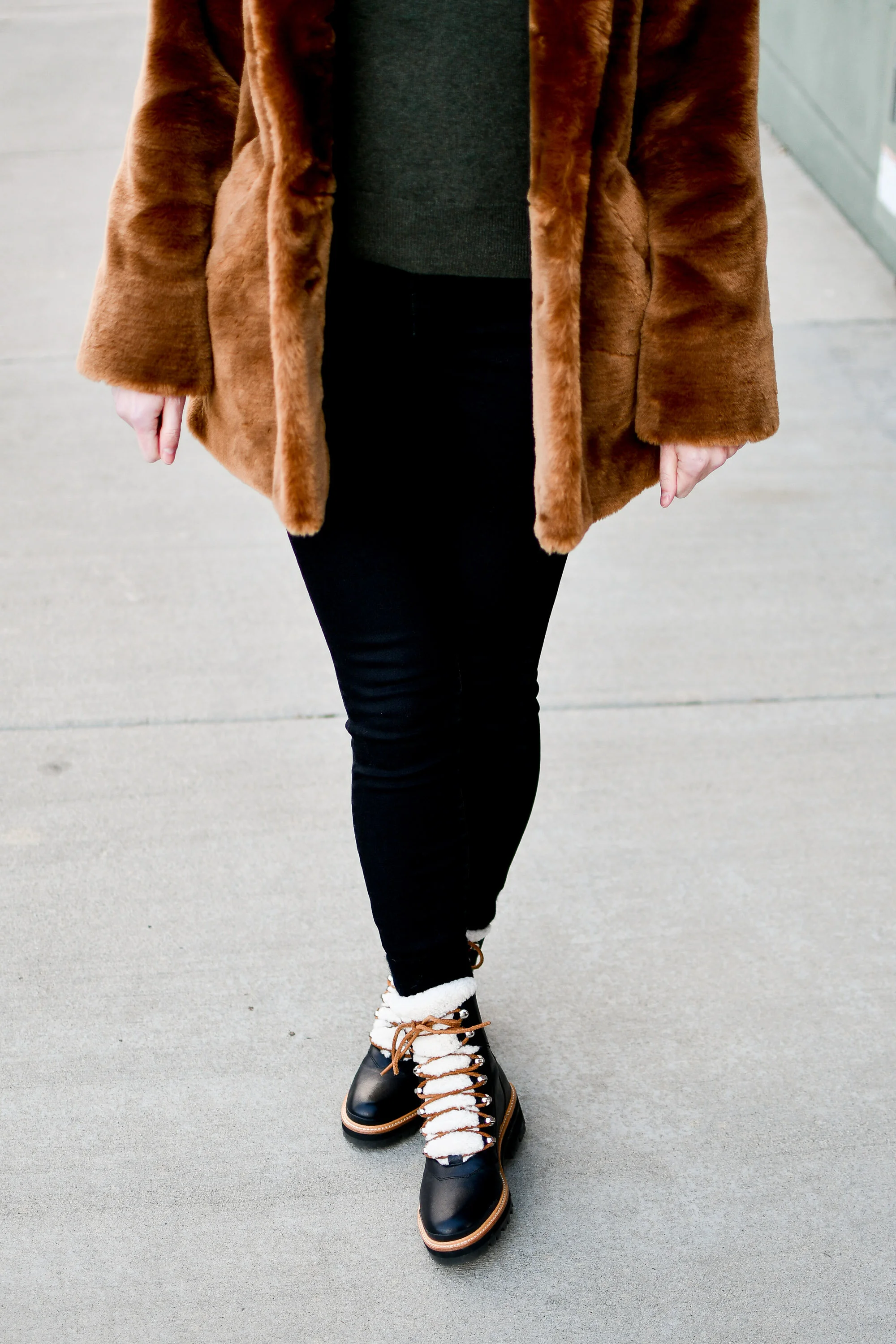 Faux fur coat and Marc Fisher Izzie boot winter outfit Very well made.
