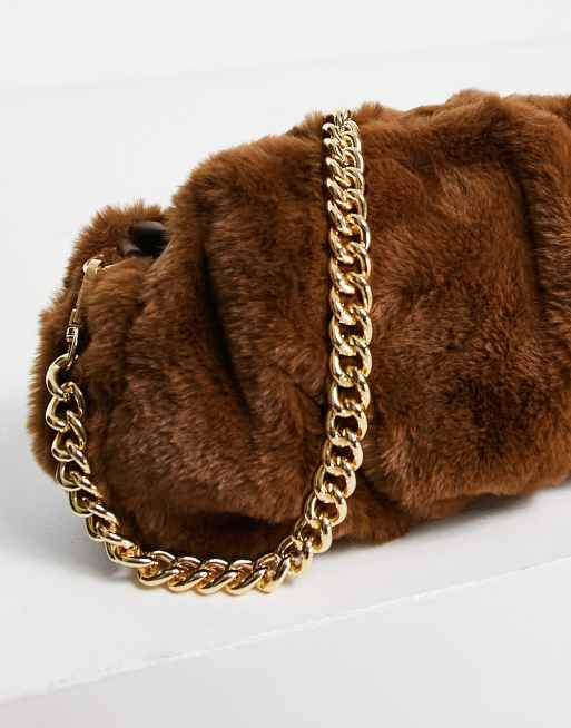 ASOS DESIGN oversized ruched clutch bag in brown faux fur with Very well made.