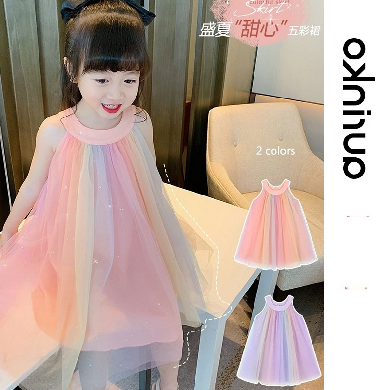 Baby Girl Dresses Sleeveless Mesh Rainbow Princess Dress For Kids Very well made.
