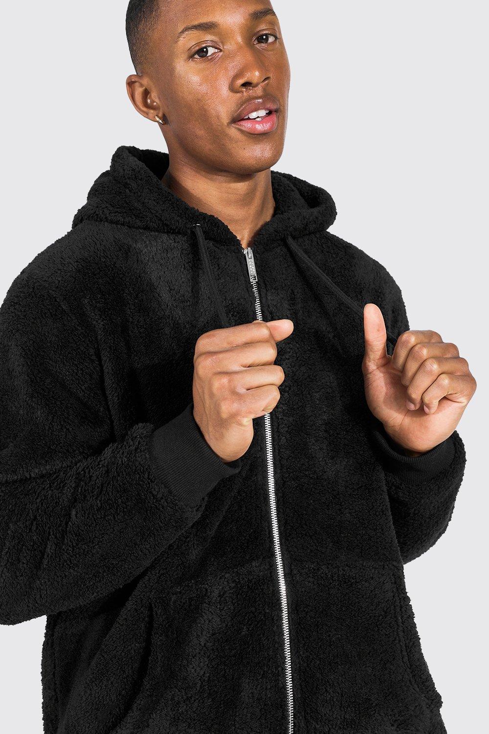Men s Borg Zip Through Hoodie Boohoo UK Very well made.