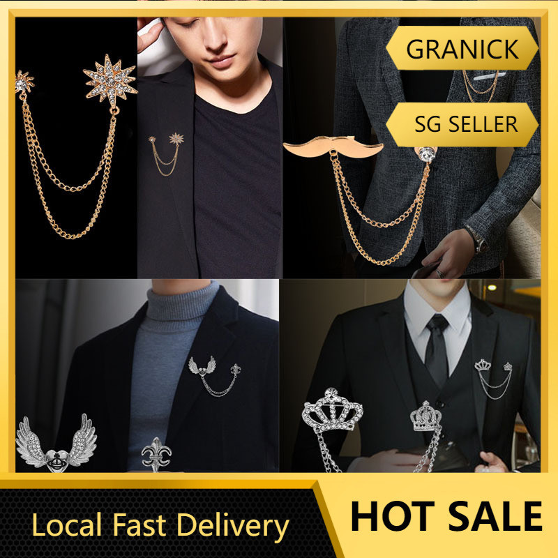 Ready stock men s brooch badge retro chain for collar pin Shopee Very well made.