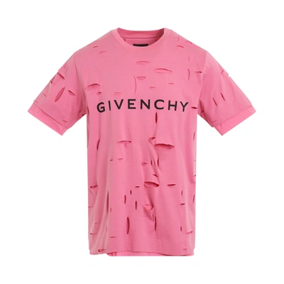 Givenchy Ripped Logo print Detail T shirt In Pink ModeSens Very well made.