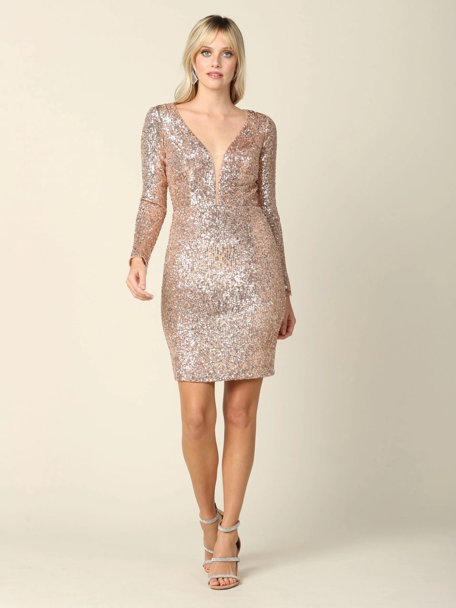 Long Sleeve Short Sequin Dress Color Rose Gold Size XL Very well made.