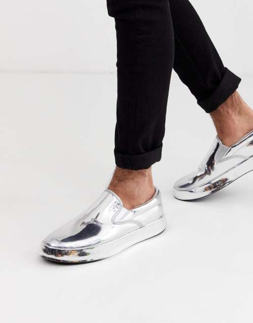 ASOS DESIGN slip on sneakers in metallic mirror silver Very well made.
