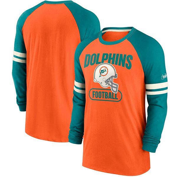 Men s Nike Orange Aqua Miami Dolphins Throwback Performance Raglan Long Sleeve T Shirt Very well made.