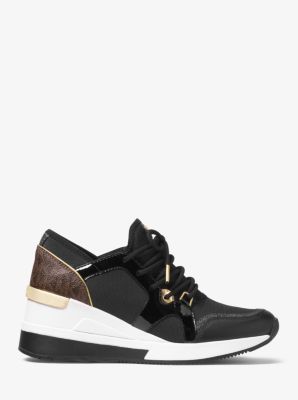Michael KORS LIV ICONIC BLACK BROWN MK GOLD LOGO WEDGE SNEAKERS I Very well made.