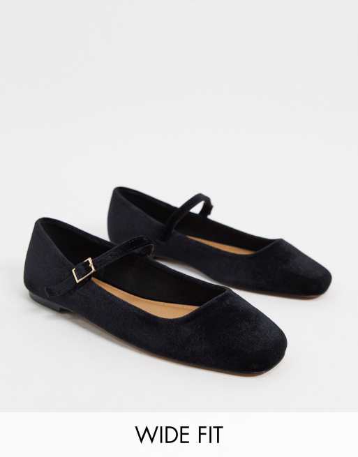 ASOS DESIGN Wide Fit Late mary jane ballet flats in black velvet Very well made.