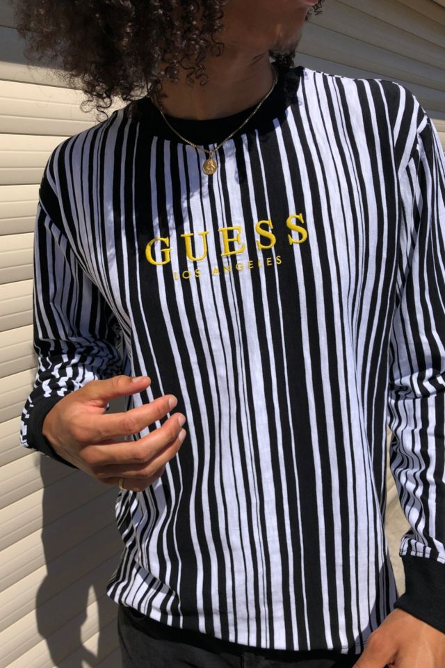 GUESS Mens Streatch Shirt XL Black Striped Cotton Vintage Very well made.