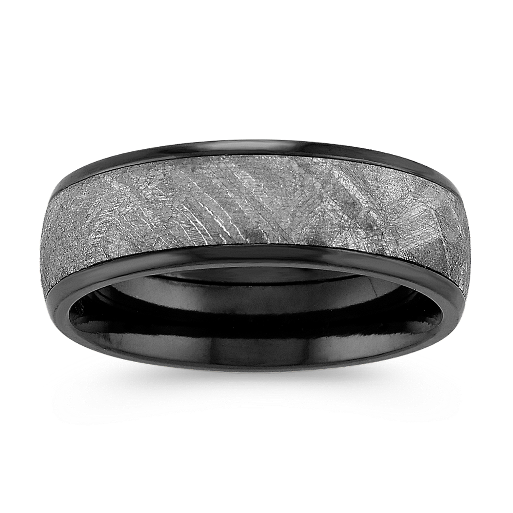 Textured Meteorite and Black Zirconium Mens Ring 7mm Very well made.