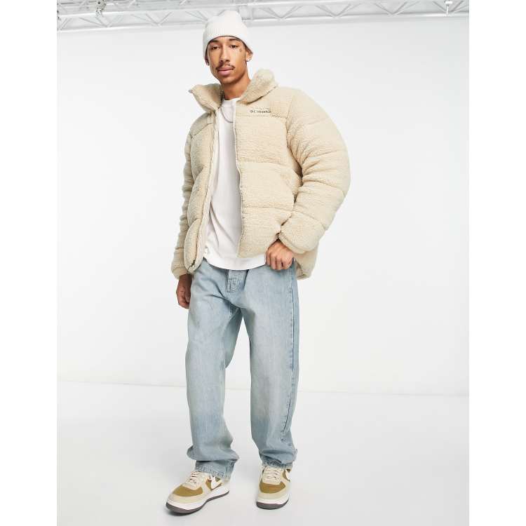 Columbia Puffect sherpa unisex puffer jacket in stone Exclusive at ASOS Very well made.