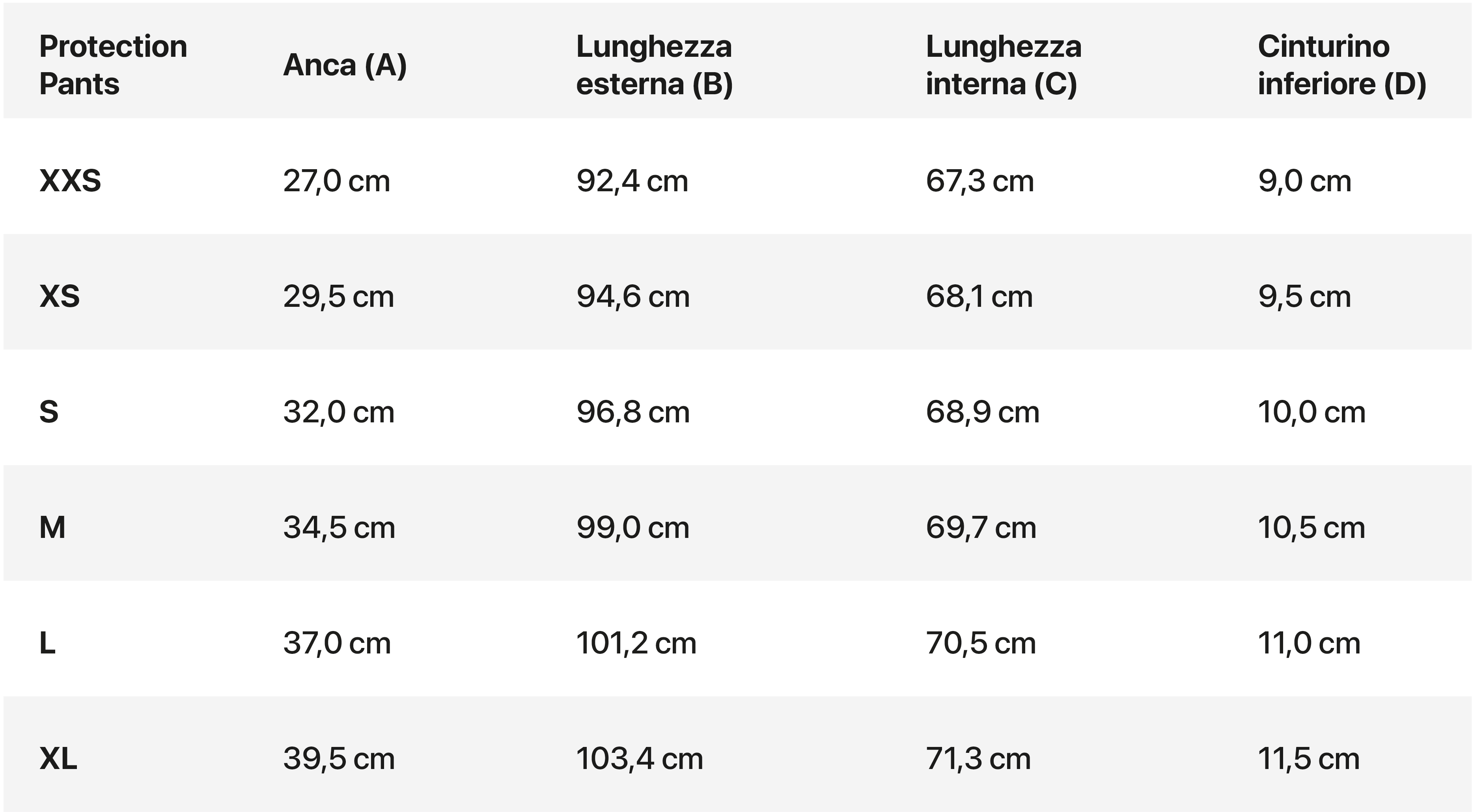Guida alle taglie Protection Pant Support Center Very well made.