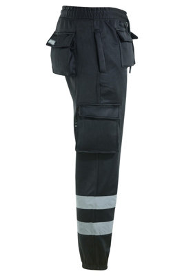 MS9 Mens Hi Viz Vis High Visibility Fleece Cargo Work Trousers Pants Joggers H1 Black L Very well made.