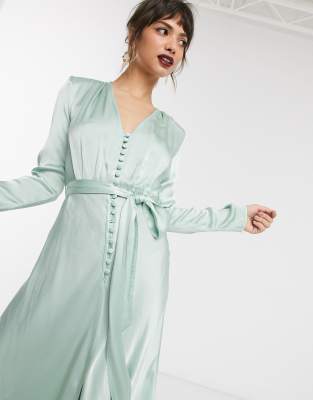 Elegant Long Sleeve Midi Satin Dress Green FreeSpirits SilkFred Very well made.