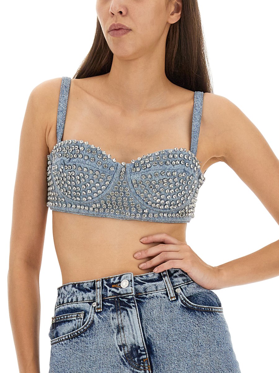 MOSCHINO JEANS COTTON DENIM BRALETTE WITH RHINESTONES Eleonora Very well made.