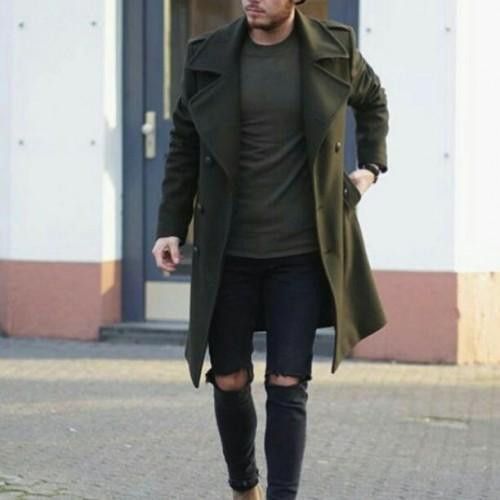 Men s Olive Pea Coat Navy Blazer White and Navy Gingham Long Very well made.