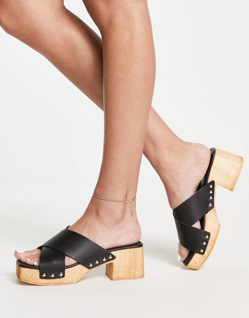Kitty Clogs Fresta black leather mid heel clog shoe shoes Anorak Very well made.
