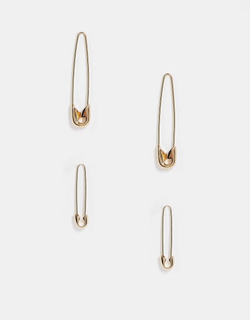 ASOS DESIGN pack of 2 safety pin earrings in gold tone Very well made.