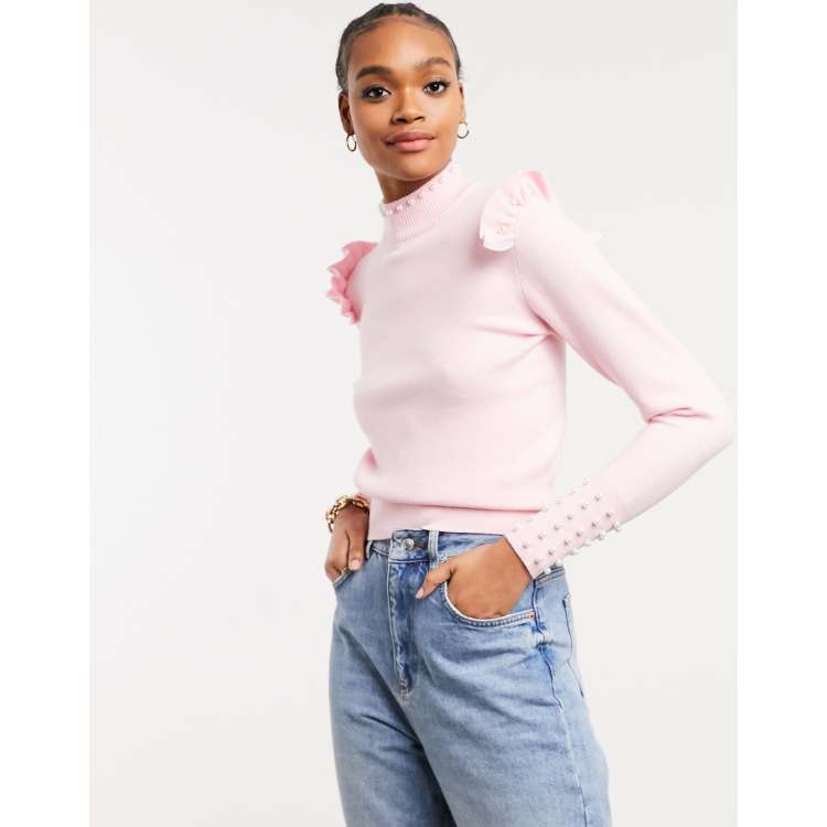 River Island pearl and frill jumper in light pink ASOS Very well made.