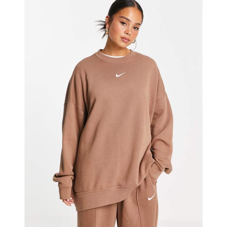 Nike mini Swoosh oversized sweatshirt in earth brown Very well made.