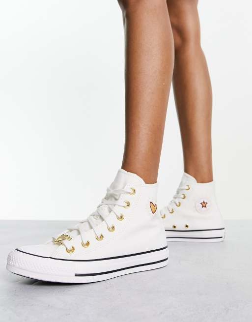 Converse Chuck Taylor All Star heart sneakers with embroidery in white Very well made.