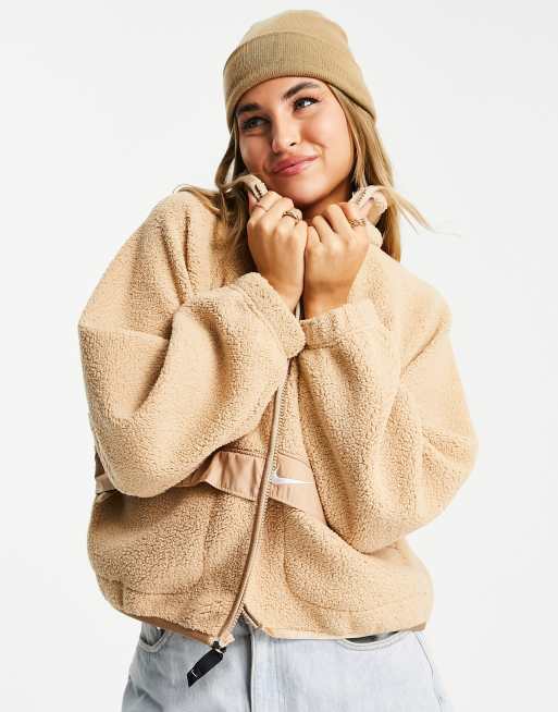 Nike Off white Sherpa Swoosh Jacket in Natural Lyst Canada Very well made.