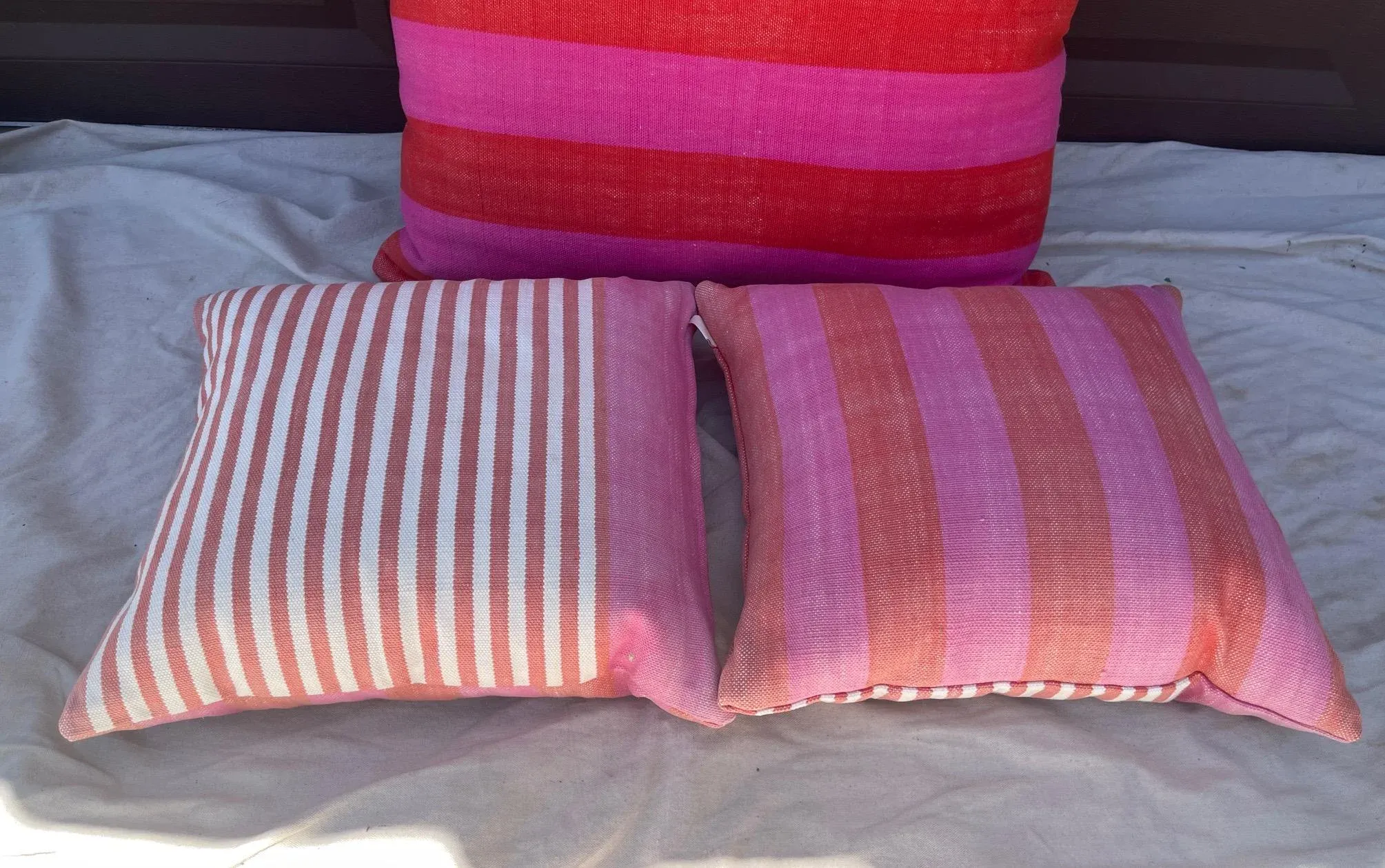 Contemporary Kate Spade Pink Double Striped Pillows Set of 3 Very well made.
