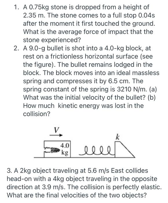 Solved 1. A 0.75kg stone is dropped from a height of 2.35 m Very well made.