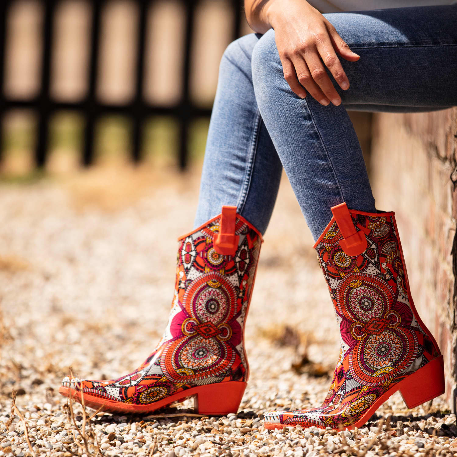 Aztec Funk Bright Orange Cowboy Boot Wellies by Talolo Boots Very well made.