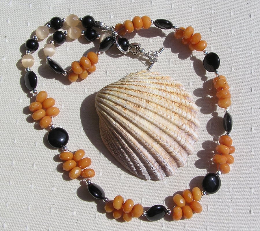 Black Onyx Orange Jade Crystal Gemstone Statement Necklace Very well made.