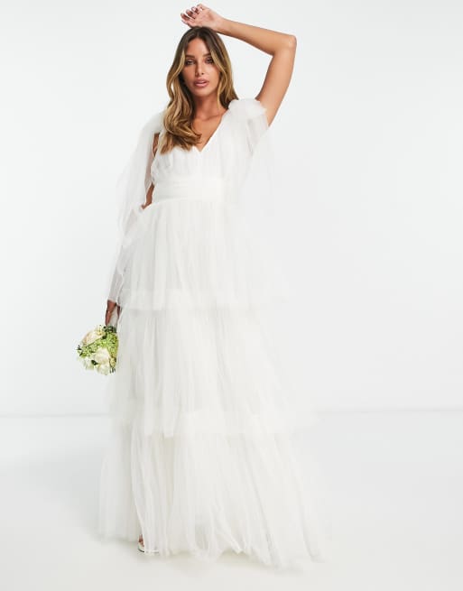 Lace Beads Bridal extreme tulle maxi dress in ivory Very well made.