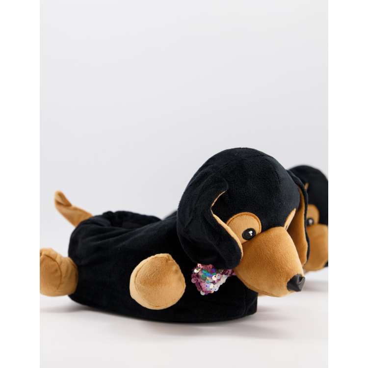 ASOS DESIGN Zizzle Pantofole nere e cuoio a forma di bassotto Very well made.