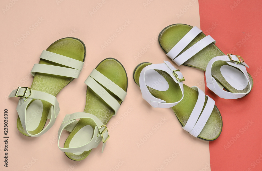 Premium Photo Fashionable leather women s sandals on a colored Very well made.