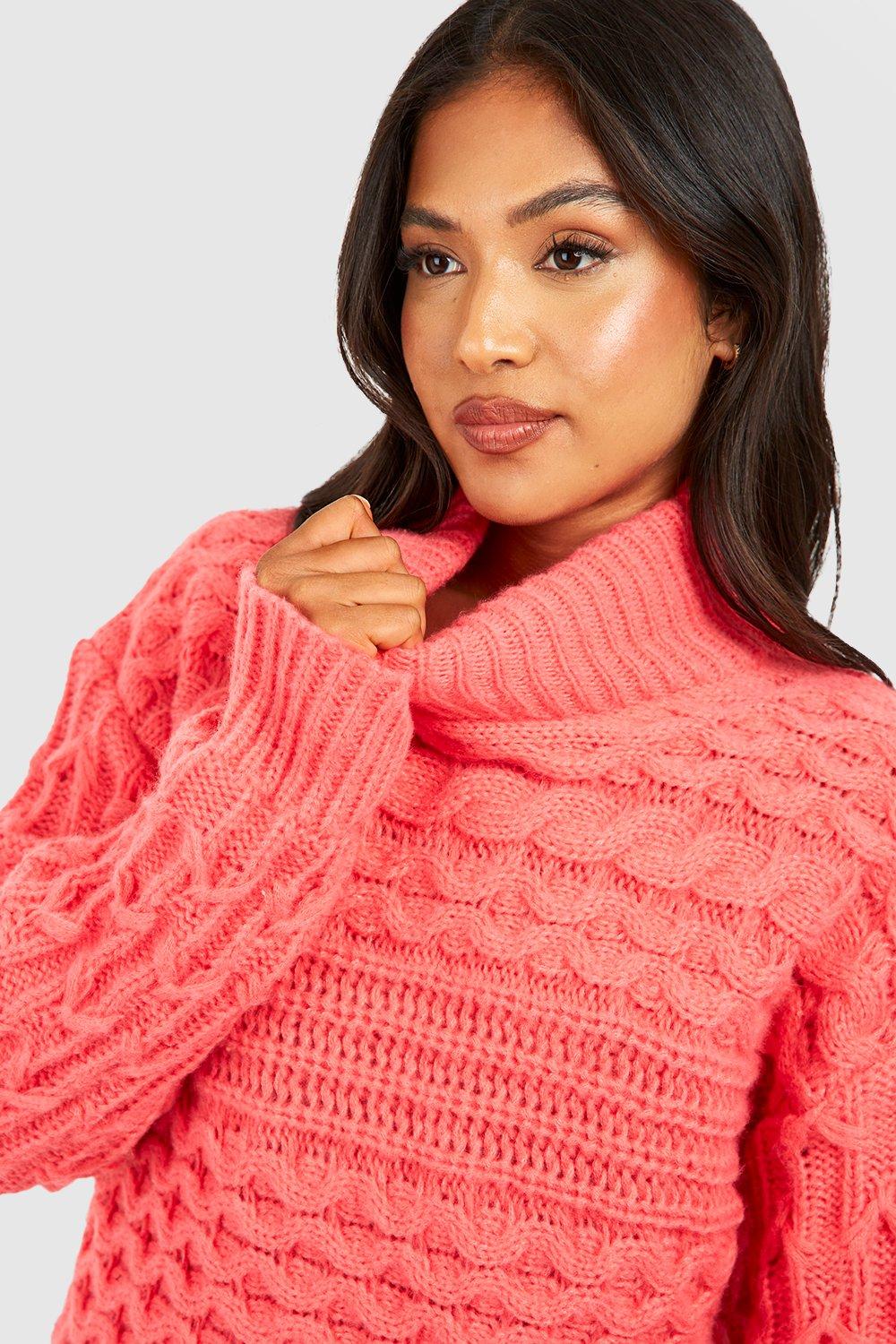 Petite Cable Knit Turtleneck Sweater boohoo Very well made.