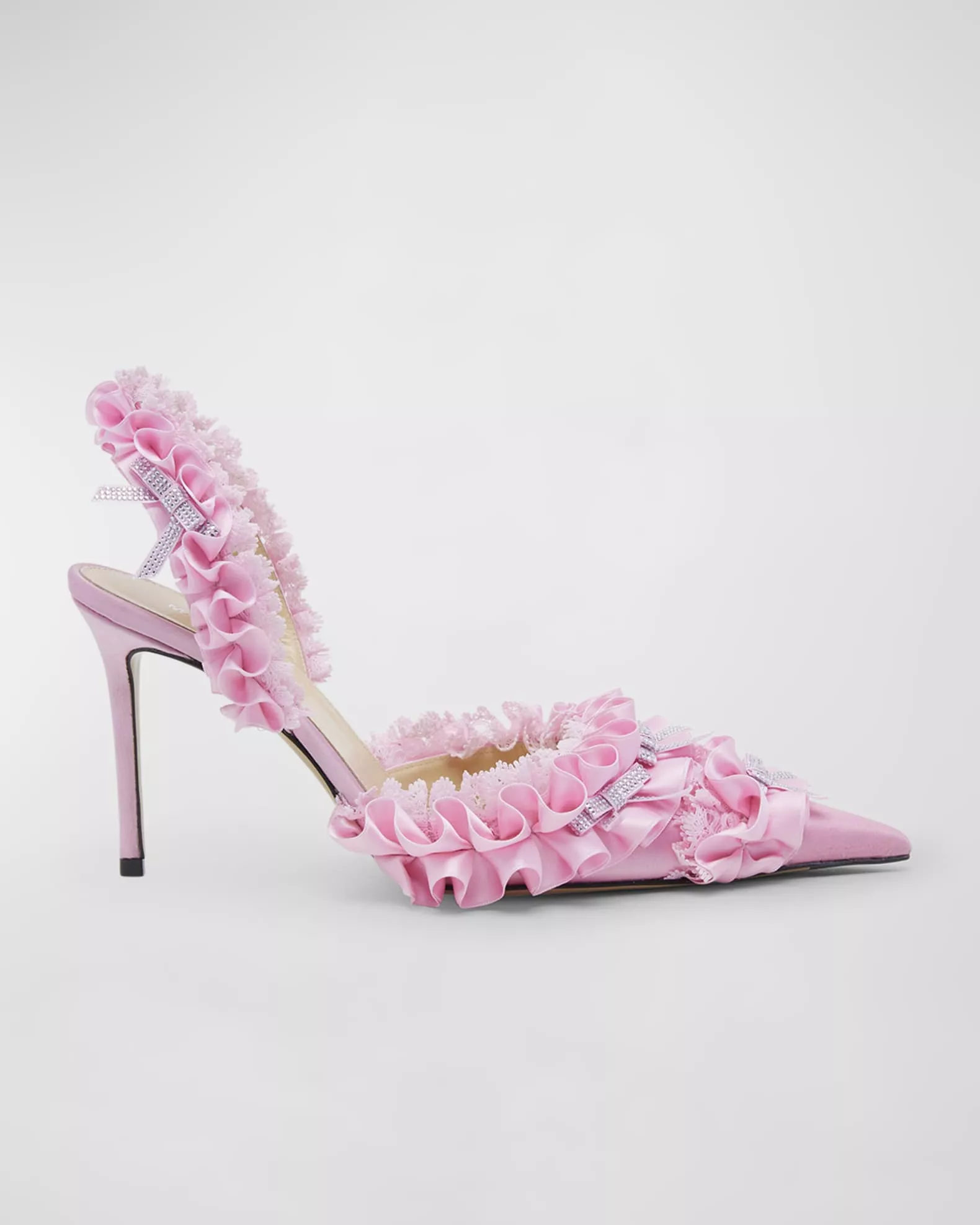 Scrunchie Pink Ruffle Strap Square Toe Stiletto Heels Public Desire Very well made.
