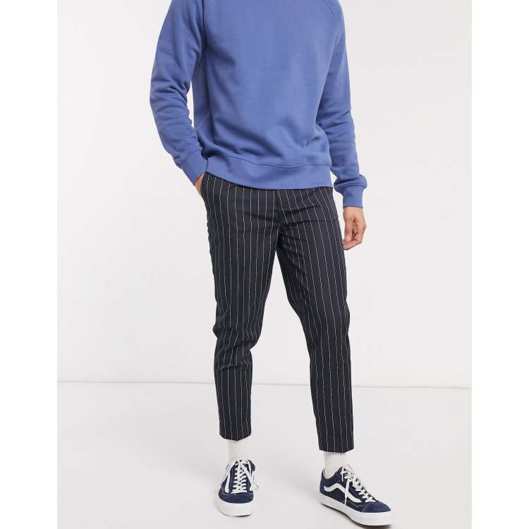 ASOS DESIGN smart tapered pinstripe pants in navy Very well made.