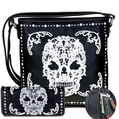 Sugar Skull Concealed Carry Black White Messenger Bag Wallet Set Very well made.
