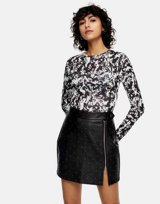 Topshop mesh long sleeve top in monochrome animal print Very well made.