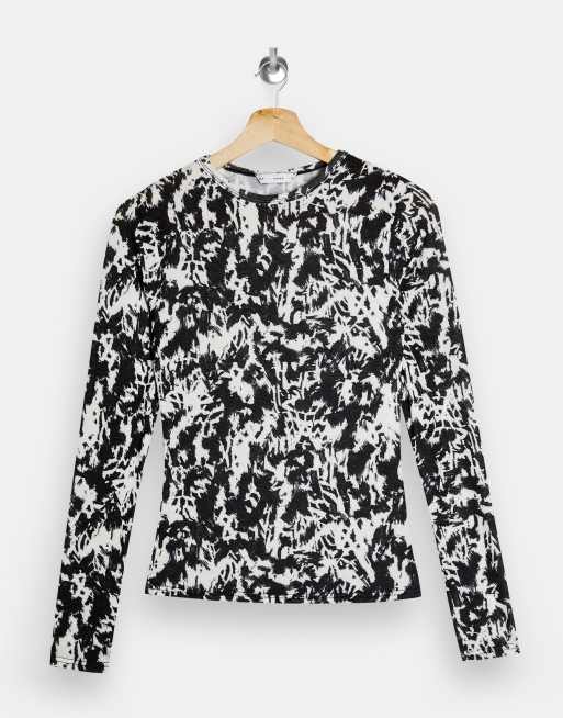 Topshop mesh long sleeve top in monochrome animal print ASOS Very well made.