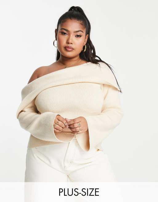 The Frolic Plus ribbed asymmetrical sweater in cream Very well made.