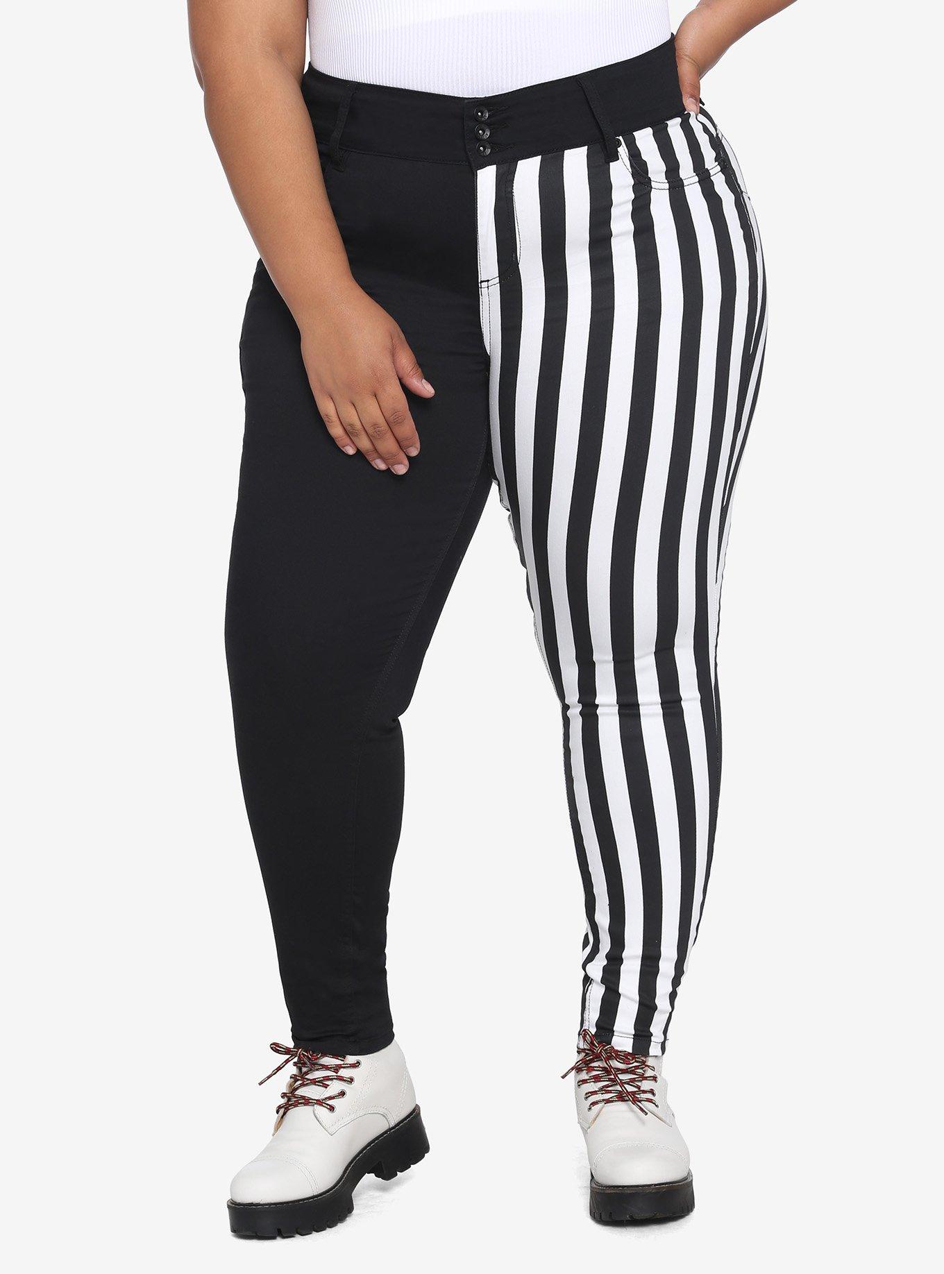 Black White Stripe Split Leg Skinny Jeans Plus Size Very well made.