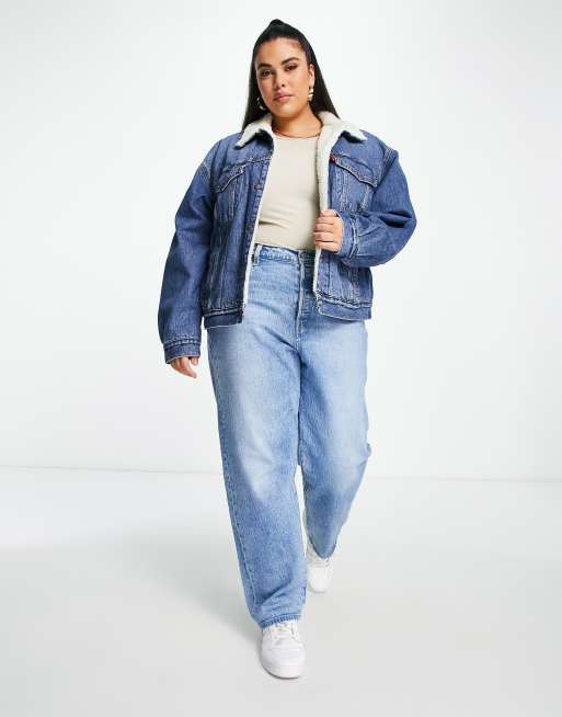 Levi s Plus Original Sherpa Trucker denim jacket in mid wash blue Very well made.