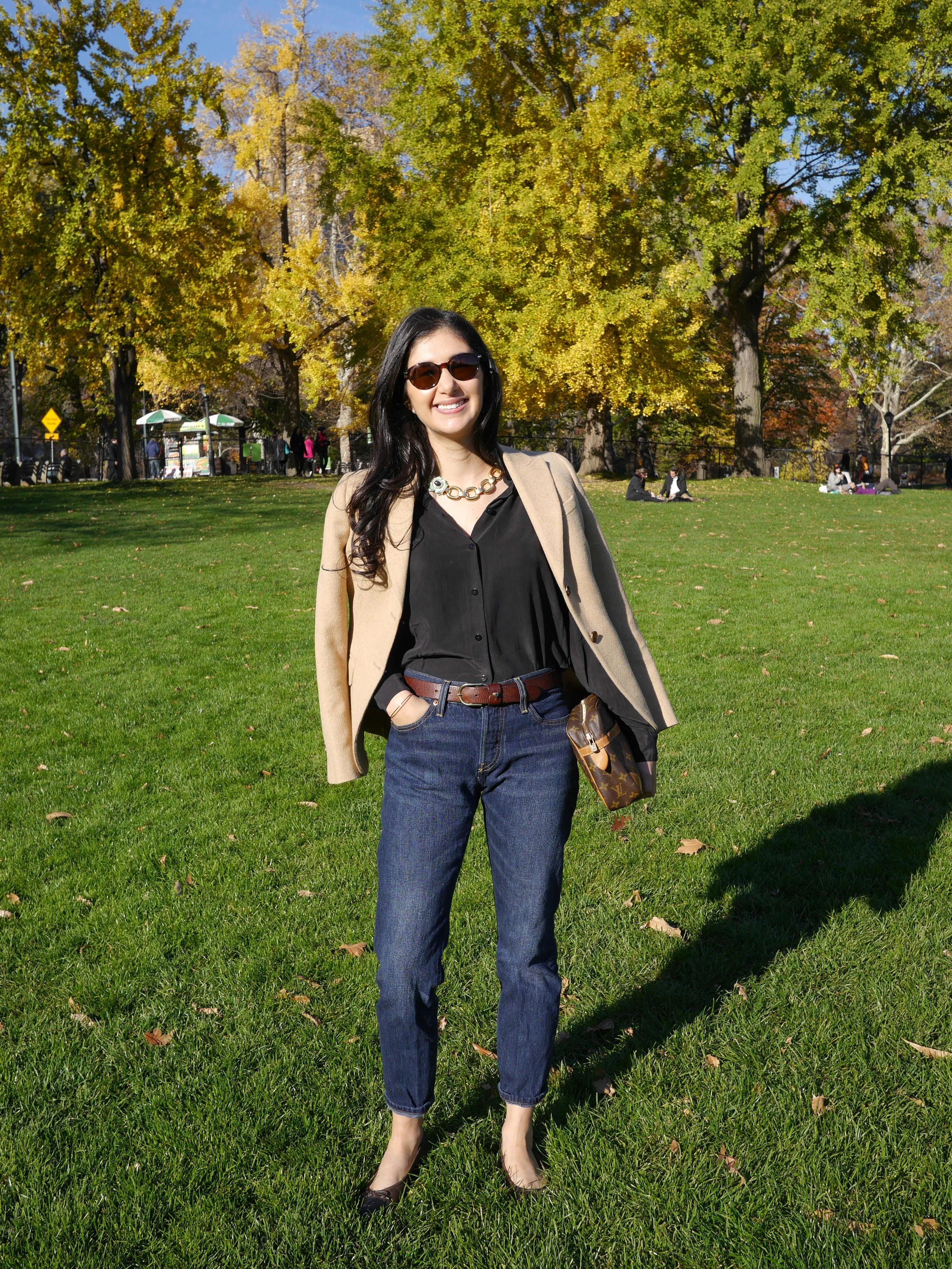 Fashion Jackson Wearing Jcrew Camel Coatigan Black Lace Cami Levis Very well made.