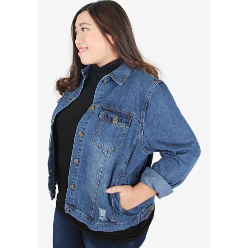 Final Sale Plus Size Distressed Fringe Crop Jacket in Light Blue Very well made.