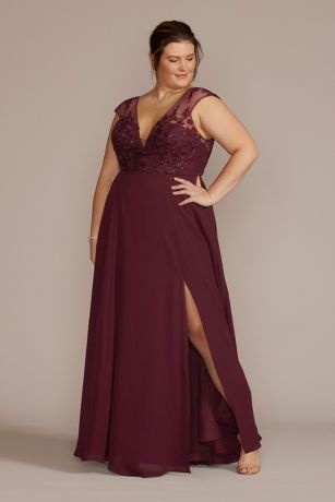 Cap Sleeve Lace and Georgette Bridesmaid Dress David s Bridal Very well made.