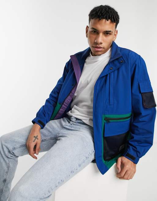 Levi s Headlands tactical colourblock rain jacket in navy peony blue Very well made.