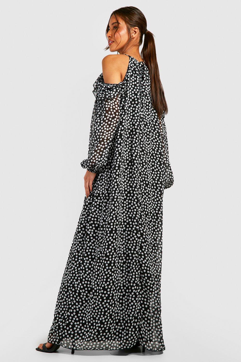 Polka Dot Corsage Cold Shoulder Maxi Dress boohoo Very well made.